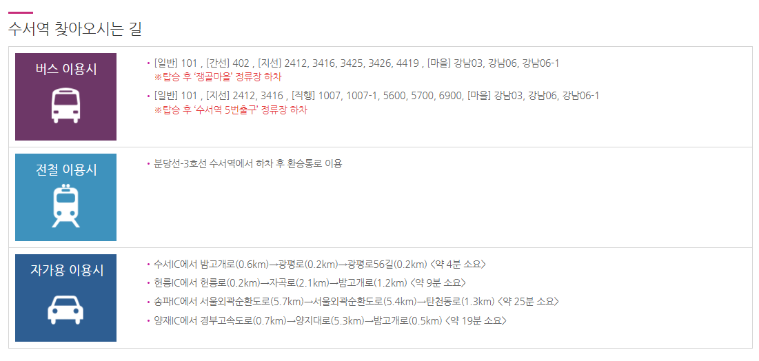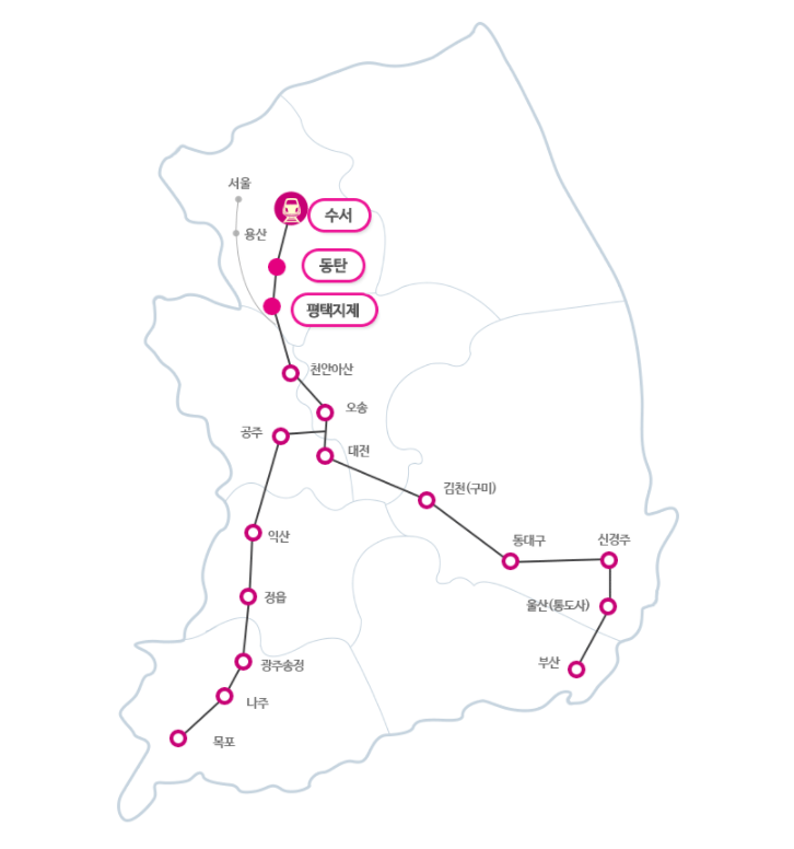 아래는 정차역인 수서역, 동탄역, 평택지제역에 대한 안내입니다.
